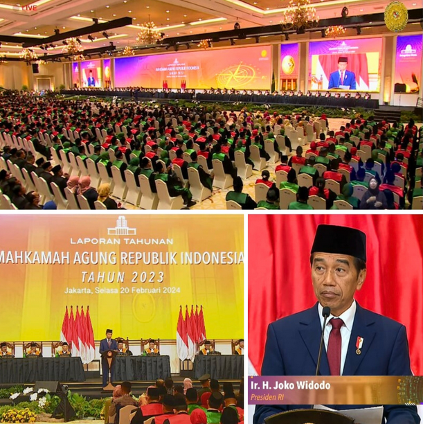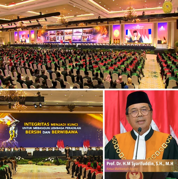 Sidang Pleno Istimewa Mahkamah Agung dengan Agenda Tunggal Laporan Tahunan Mahkamah Agung RI 2023, bertema Integritas Kuat Peradilan Bermartabat. Kegiatan tersebut dibuka dan dipimpin Ketua Mahkamah Agung, Prof. Dr. M. Syarifuddin, S.H., M.H.