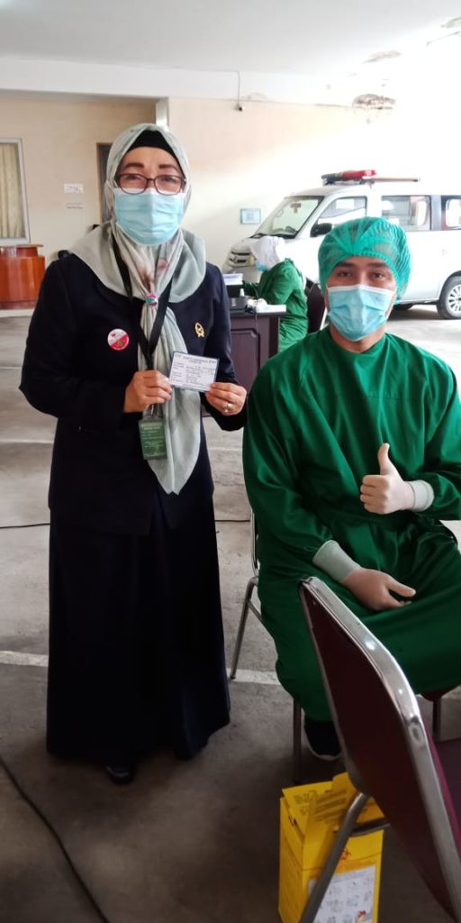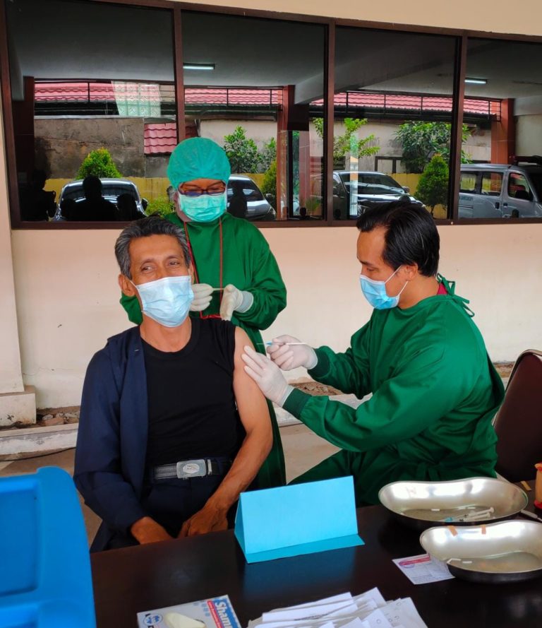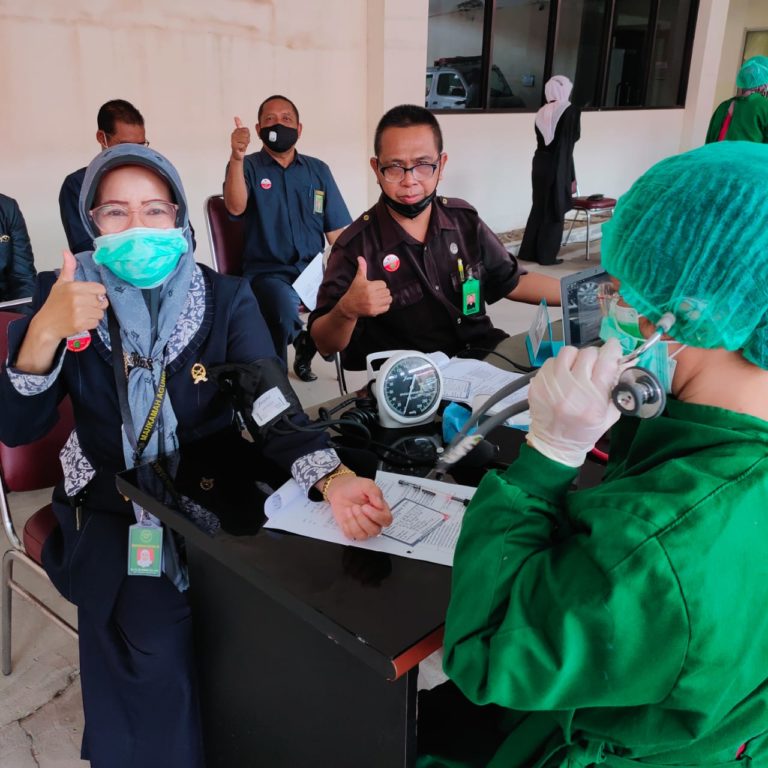 pa-palangkaraya.go.id || Pada Senin pagi (22/03) Seluruh pegawai Pengadilan Agama Palangka Raya Kelas 1A, mulai dari Wakil Ketua, hingga pegawai honorer menerima vaksinasi Covid-19 tahap pertama. Program pemberian vaksinasi covid-19 di PA Palangka Raya ini dilaksanakan oleh tenaga medis dari Dinas Kesehatan melalui Puskesmas Jekan Raya.