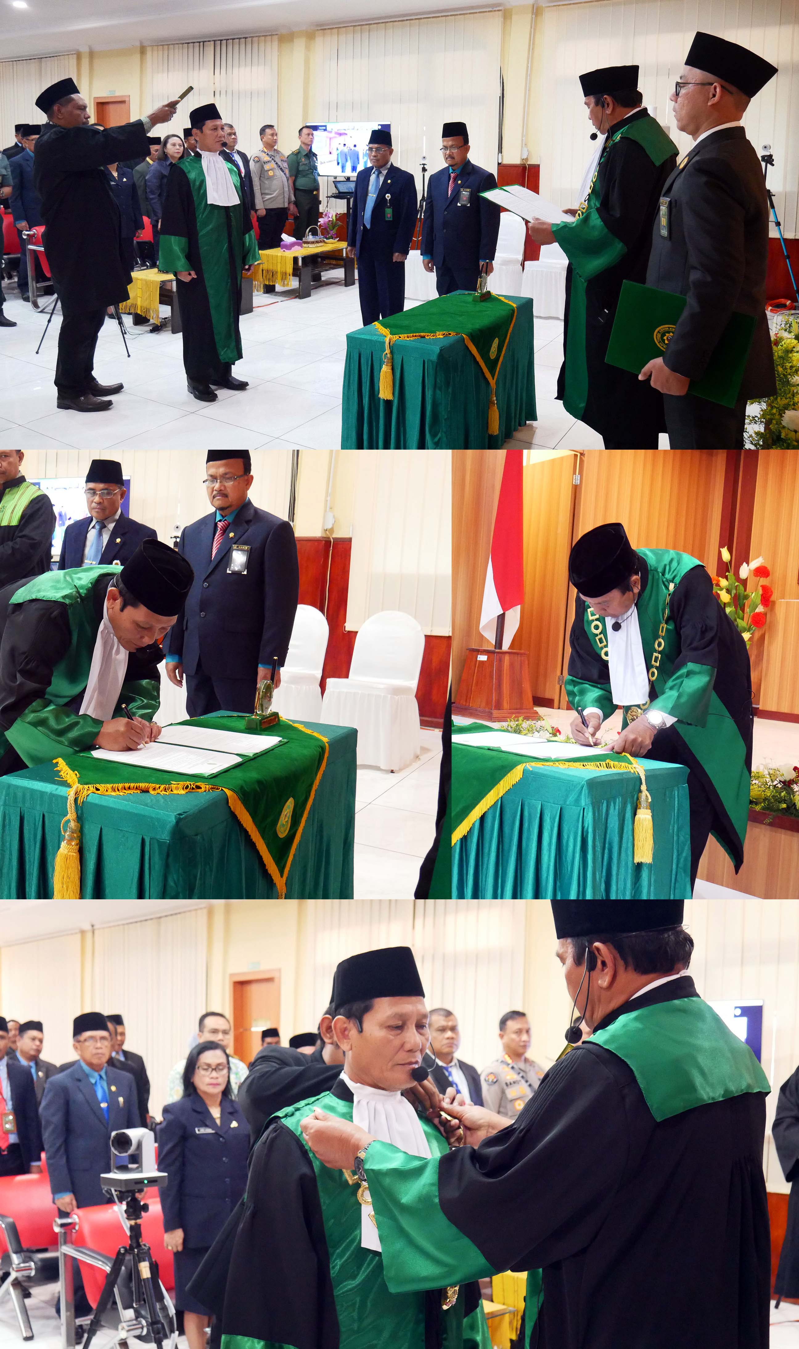 Setelah itu acara dilanjutkan dengan Pengambilan Sumpah Jabatan oleh Yang Mulia Bapak Drs. Ilham Abdullah., SH., M.Kn selaku Ketua Pengadilan Tinggi Agama Kupang, penandatanganan Berita Acara Sumpah dan Pakta Integritas, kemudian dilanjutkan lagi dengan pemasangan kalung jabatan Wakil Ketua dan Kata-kata Pelantikan oleh Yang Mulia Ketua Pengadilan Tinggi Agama Kupang.
