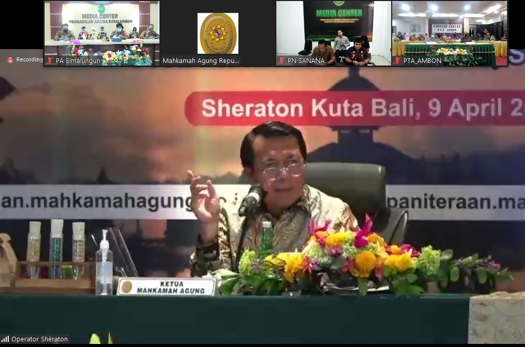 Kegiatan ini dibuka oleh Ketua Mahkamah Agung Prof. Dr. M. Syarifuddin, S.H., M.H. Narasumber dalam kegiatan ini selain Ketua Mahkamah Agung, yaitu wakil ketua bidang yudisial, wakil ketua bidang non yudisial serta para ketua kamar. Dalam kegiatan ini Ketua Mahkamah Agung mengingat tentang himbauan terhadap penggunaan media sosial, serta mengingatkan agar seluruh aparatur peradilan di bawah Mahkamah Agung mengikuti himbauan pemerintah untuk tidak melaksanakan mudik.