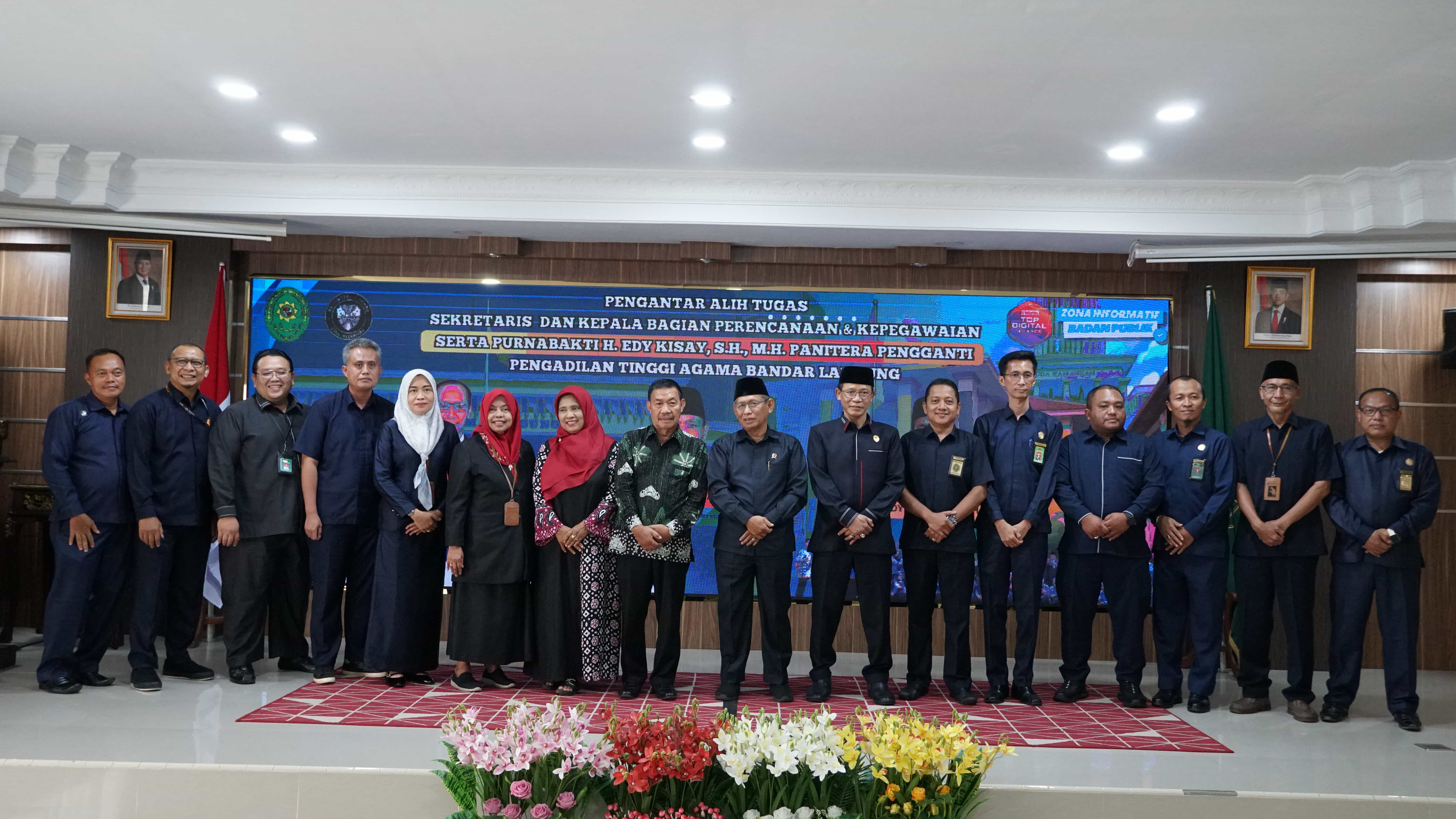 Pada kesempatan yang sama, dilaksanakan pula acara pengantar alih tugas H. Aziz Falahudin, S.H., M.H., yang sebelumnya menjabat sebagai Sekretaris PTA Bandar Lampung dan selanjutnya akan mengemban amanah baru sebagai Panitera Pengganti pada Pengadilan Tinggi Agama Jakarta. Pimpinan menyampaikan harapan agar beliau dapat melaksanakan tugas di tempat yang baru dengan profesionalisme serta membawa pengalaman dan semangat pengabdian yang telah ditunjukkan selama bertugas di PTA Bandar Lampung.